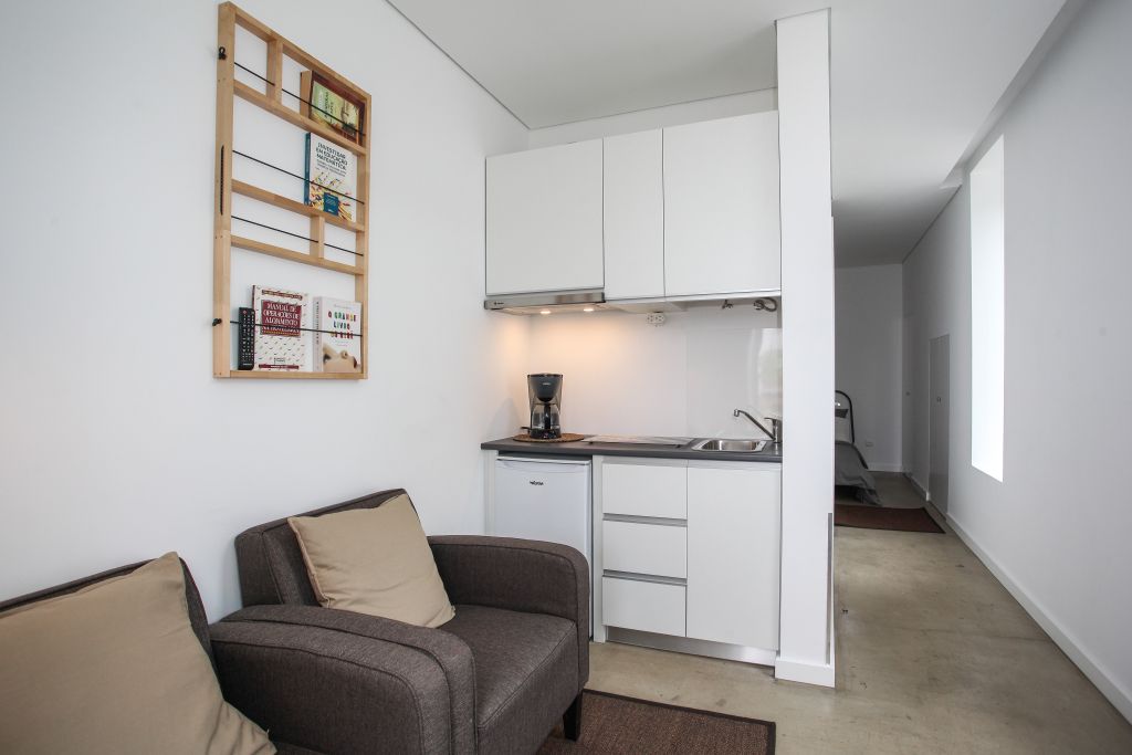 This is an one-bedroom suite (apt.) on the ground floor with a 50m2 area that include a kitchenette and living-room, bathroom with shower, a small patio and direct access to the garden.